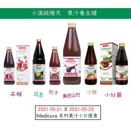 陰曆四月立夏是節,小滿是氣,陽氣上升,日長炎熱,這時最宜以純淨天然果汁養生。山竹纖體、石榴抗氧化防癌、杞子明目,沙棘穩定血糖、小紅莓護心腎尿道、諾麗補B6。由2021.5.21至2021.5....