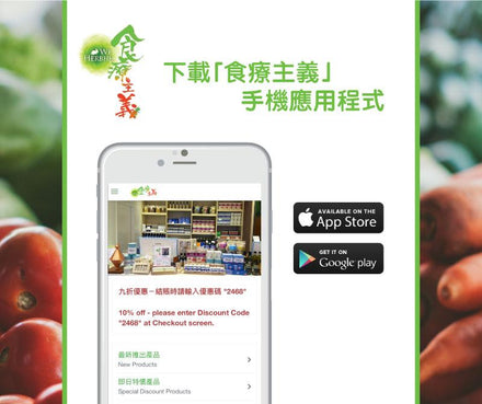 食療主義手機程式已經推出,一app在手,可以隨時隨地購物,接收講座、試食會、特價活動的通知,又方便瀏覽健康新知與食譜,健康人生盡在「掌」握之中。請立即下載!
