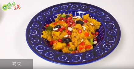 黃薑番茄藜麥菜飯Quinoa with Turmeric and Vegetables 材料:A:藜麥一杯(要先浸過夜或數小時)、清水一杯B:蕃薯半個C:椰子油兩湯匙、洋蔥半個、蒜頭兩片、燈籠...