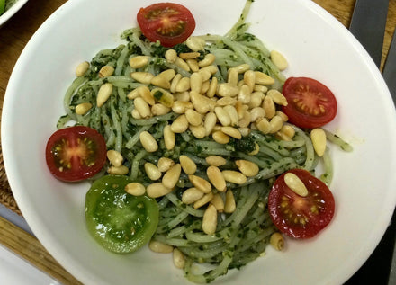 羅勒松子藜麥意粉 (Quinoa Pasta with Pesto and Pine Nuts) 羅勒松子藜麥粉   成份 1 杯羅勒葉 Basil leaves 半杯松子 P...