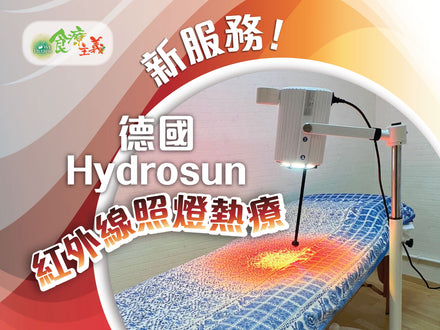 德國 Hydrosun 是以「水濾紅外線-A」產生療效的照護燈 (不含紫外光),與別不同,其專利濾光鏡內含液體,濾走紅外線可傷皮膚的波段,防止表層皮膚過熱,穿透深層組織提供熱療。